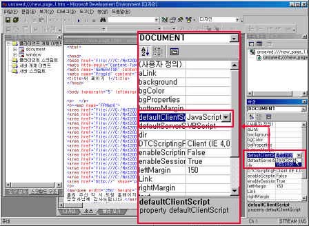 2) ±×·¯¸é Microsoft Script Editor°¡ ³ªÅ¸³³´Ï´Ù. âÀÇ ¿ìÃøÀÇ [¼Ó¼º] â¿¡¼ [defaultClientScript] Ç׸ñÀ» ¼±ÅÃÇÕ´Ï´Ù.