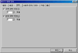 3) [¿©¹é] ÅÇ¿¡¼ [À§ÂÊ ¿©¹é ÁöÁ¤]°ú [¿ÞÂÊ ¿©¹é ÁöÁ¤] Ç׸ñ¿¡ üũÇϰí [0]Çȼ¿·Î ¼³Á¤ÇÑ ´ÙÀ½ [È®ÀÎ] ´ÜÃ߸¦ Ŭ¸¯ÇÕ´Ï´Ù.